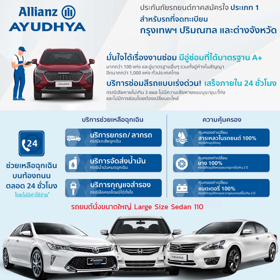 ประกันภัยชั้น 1 สำหรับรถยนต์นั่งขนาดใหญ่ (Large Sedan) จากอลิอันซ์ อยุธยา ประกันภัย