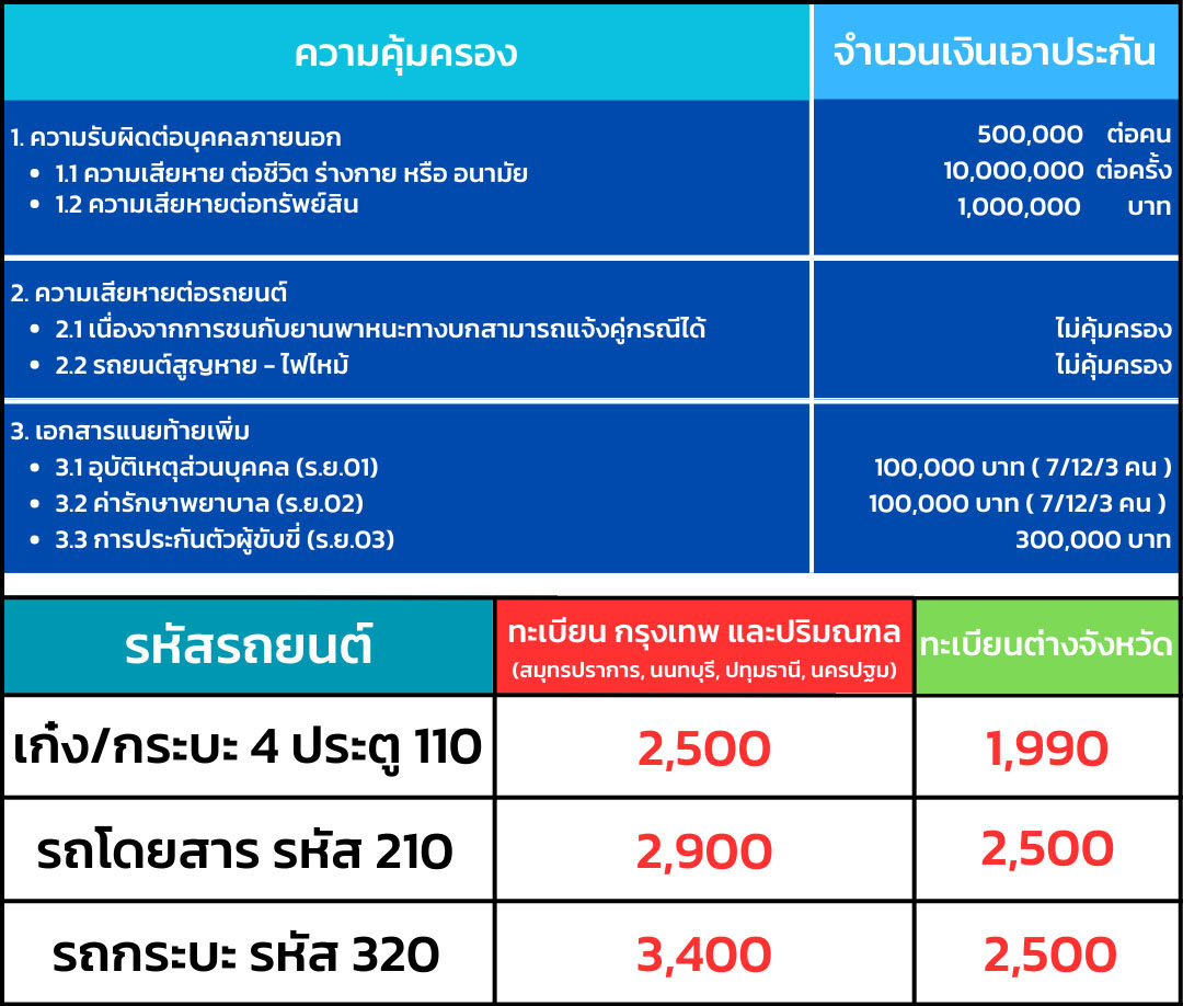 • ไม่ต้องสำรองจ่ายค่ารักษาพยาบาล ในกรณีที่เกิดอุบัติเหตุและมีผู้บาดเจ็บ